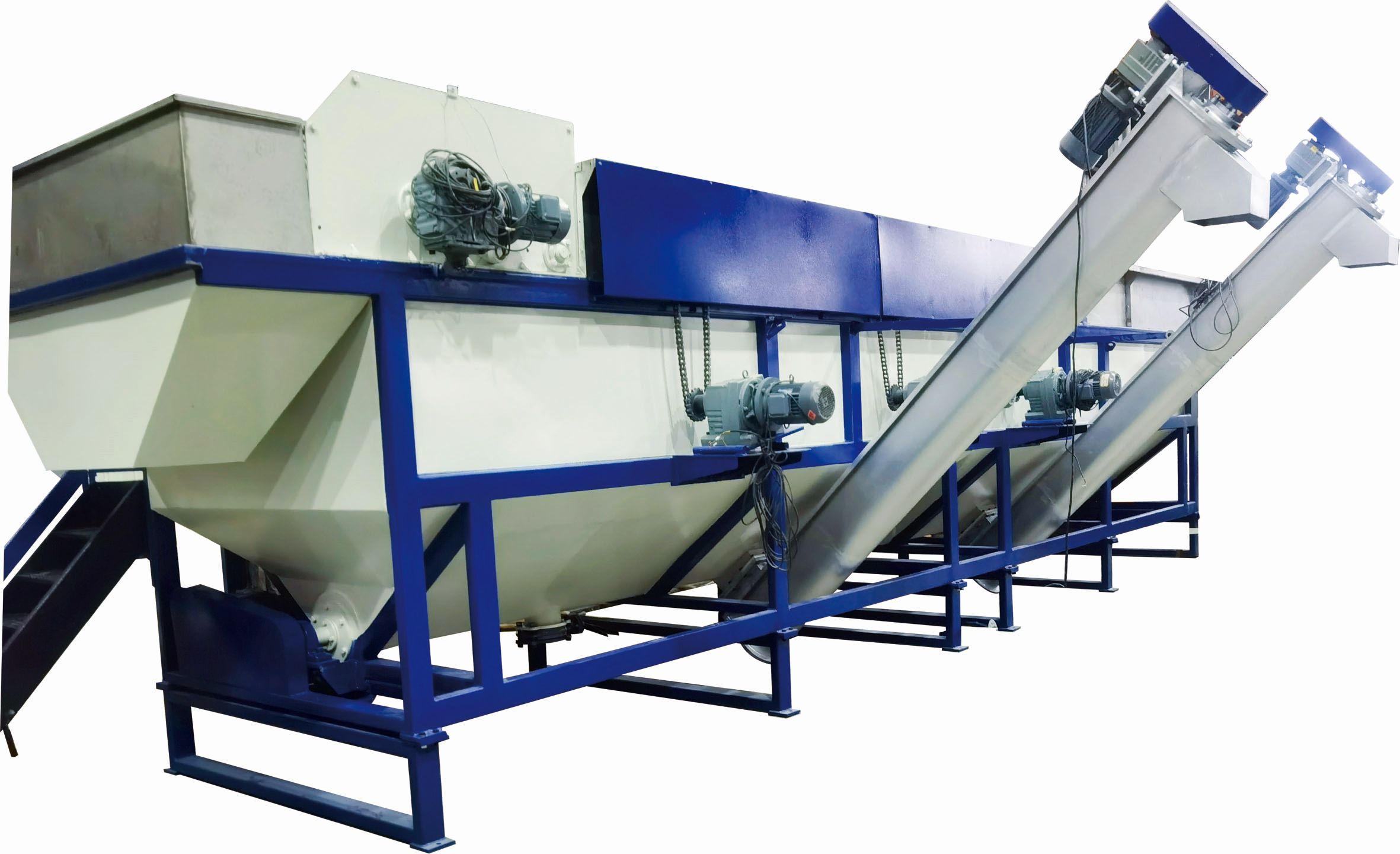 The dewatering machine removes dirty water, soil, and pulp after provious floating washing tank, so as to ensure the water in the subsequent washing tank is clean thus improve the cleaning performance.